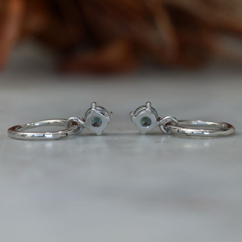 Sapphire is set on a hinged hoop earring that is 10mm in the internal diameter with a polished finish. Comfortable for everyday!