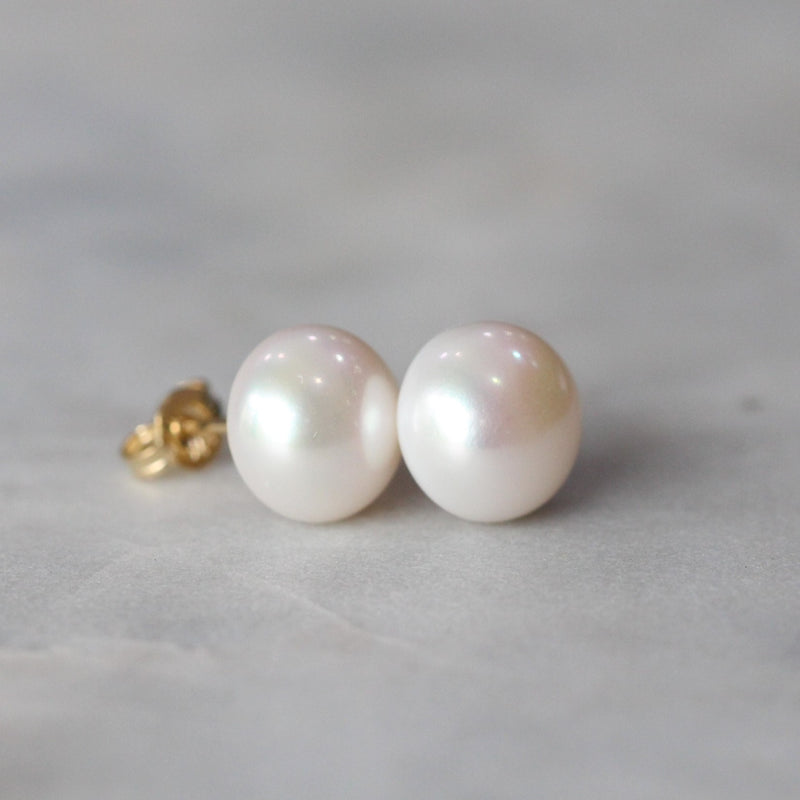 Natural Button Pearl Stud Earrings available in solid 9ct Yellow Gold.