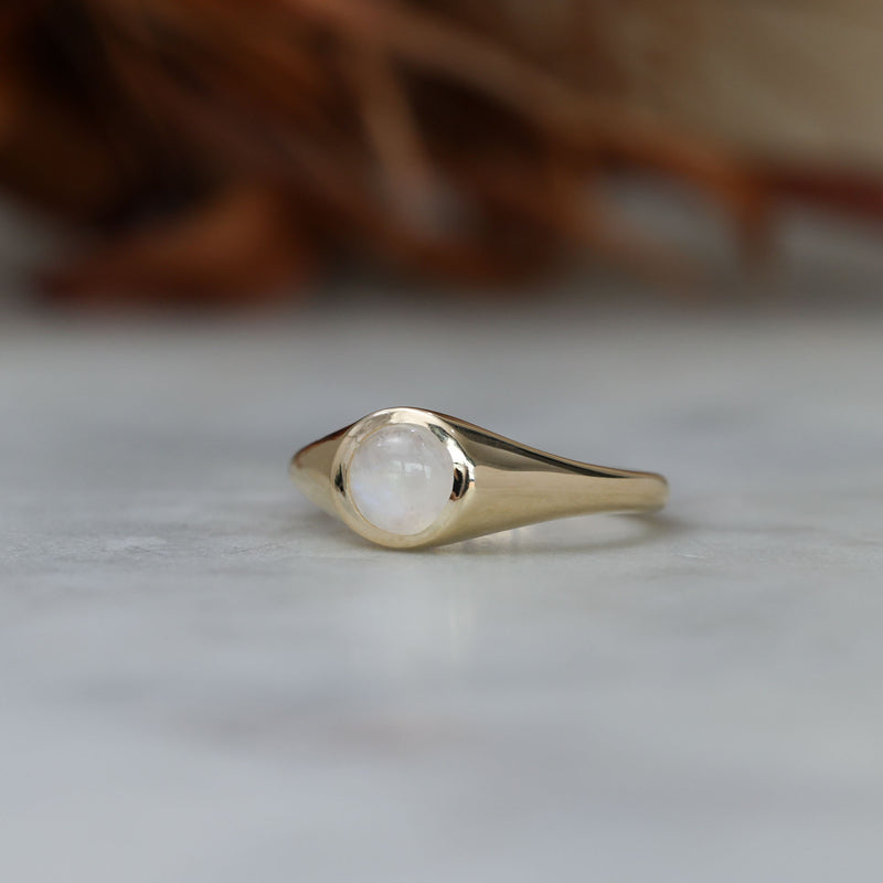 Our Petite Cabochon Signet Ring, crafted from solid 9ct Rose, White or Yellow Gold.